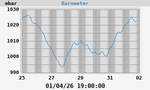 This week's min: 1022.1 mbar at 04:40:00 (Sunday)