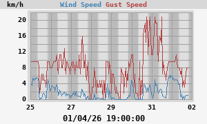 This week's max: 2 km/h at 06:50:00 (Sunday)